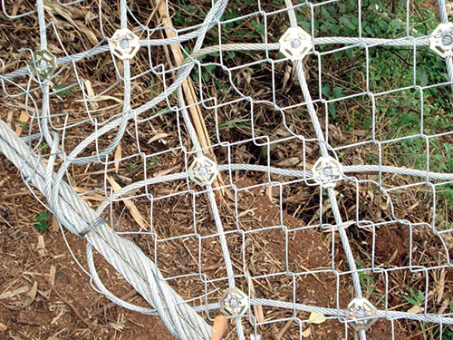 作用原理上類似于噴錨和土釘墻等面層護坡體系,但因其柔性特征能使系統(tǒng)將局部集中荷載向四周均材質:鋼絲繩網、普通鋼絲格柵(常稱鐵絲格柵)和TECCO高強度鋼絲格柵 勻傳遞以充分發(fā)揮整個系統(tǒng)的防護能力,即局部受載,整體作用,從而使系統(tǒng)能承受大的荷載并降低單根錨桿的錨固力要求 。