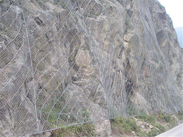 SNS邊坡防護(hù)網(wǎng)系統(tǒng)的常用規(guī)格:[鋼柱(間距10M),帶消能環(huán)的∮16雙支撐繩和∮16"人"字形上拉錨繩(每跨6個(gè)消能環(huán)),∮16側(cè)拉錨繩(單繩),◇/08/200/4*5㎡鋼絲繩網(wǎng),縫合繩,格柵網(wǎng)。 材質(zhì):鋼絲繩網(wǎng)、普通鋼絲格柵(常稱鐵絲格柵)和TECCO高強(qiáng)度鋼絲格柵 。構(gòu)造:前兩者通過鋼絲繩錨桿和/或支撐繩固定方式,后者通過鋼筋(可施加預(yù)應(yīng)力)和/或鋼絲繩錨桿(有邊沿支撐繩時(shí)采用)、專用錨墊板以及必要時(shí)的邊沿支撐繩等固定方式 。產(chǎn)品特性:SNS邊坡防護(hù)網(wǎng)作用原理上類似于噴錨和土釘墻等面層護(hù)坡體系,但因其柔性特征能使系統(tǒng)將局部集中荷載向四周均材質(zhì):鋼絲繩網(wǎng)、普通鋼絲格柵(常稱鐵絲格柵)和TECCO高強(qiáng)度鋼絲格柵 勻傳遞以充分發(fā)揮整個(gè)系統(tǒng)的防護(hù)能力,即局部受載,整體作用,從而使系統(tǒng)能承受較大的荷載并降低單根錨桿的錨固力要求 。被動(dòng)防護(hù)系統(tǒng):材質(zhì):鋼絲繩網(wǎng)、支撐繩和減壓環(huán),構(gòu)造:由鋼絲繩網(wǎng)或環(huán)形網(wǎng)(需攔截小塊落石時(shí)附加一層鐵絲格柵)、固定系統(tǒng)(錨桿、攔錨繩、基座和支撐繩)、減壓環(huán)和鋼柱四個(gè)主要部分構(gòu)成。